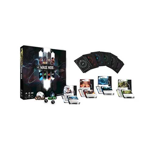 Mage Noir propose trois extensions avec la voie du guerrier-mage (ajout de l’élément terre), chemin de la cintreuse du temps (ajout de l’élément du temps) et enfin le mage solitaire qui permet d’avoir un mode solitaire et en coopération. .