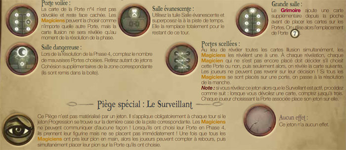 Une fois ces différentes phases de jeu terminé le grimoire range les cartes et reprend à la phase une en intégrant les nouveaux pièges en fonction des résultats du tour précédent.